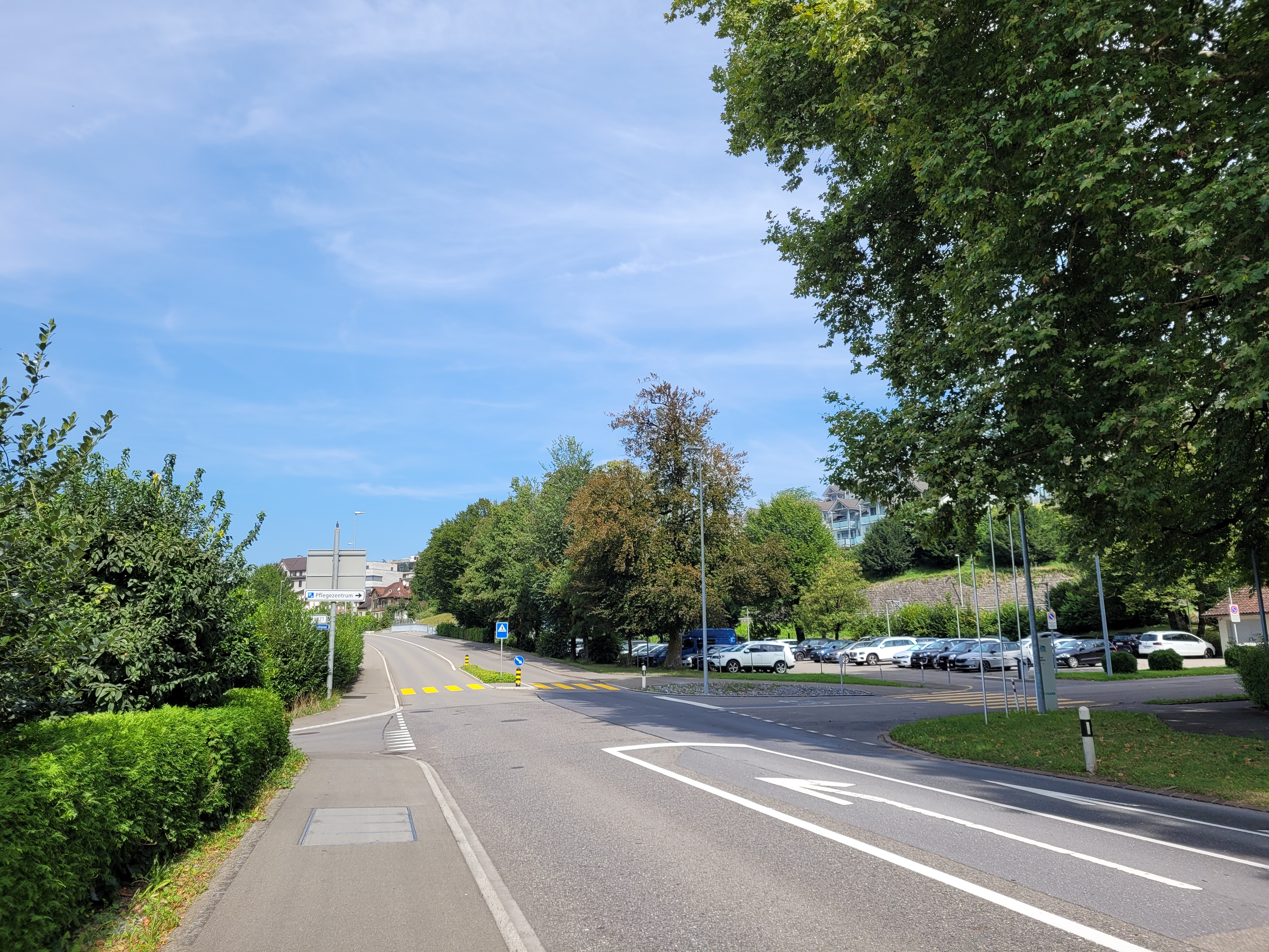 Blick von Gasterstrasse Richtung Städtli und Personalparkplatz Spital Linth