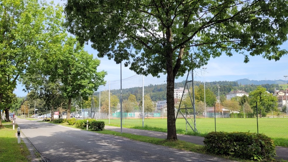 Die Tunnelzufahrt bei der Benknerstrasse befindet sich bei der Südecke des östlichsten Fussballplatzes.